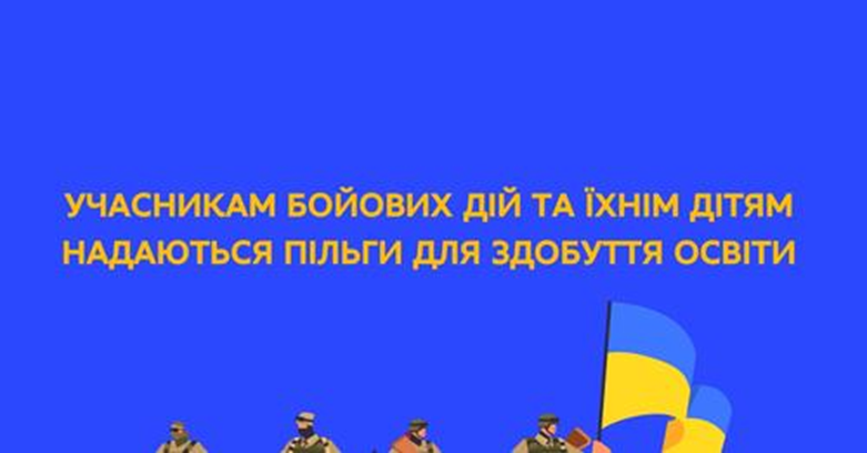 учасникам бойових дій та їхнім дітям надається державна підтримка для здобуття